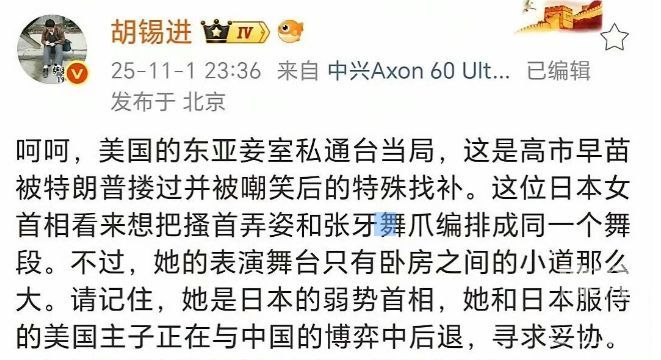 [原创] 公众人物胡锡进卢克文沈逸调侃高市早苗言论失范,既损国格又辱尊严