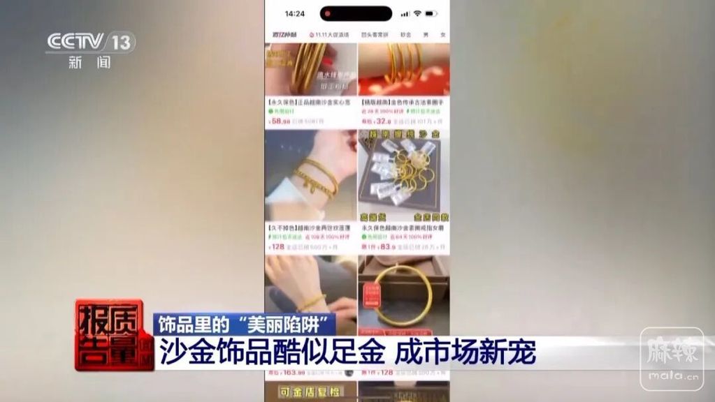 记者发现,目前市场上一种名为“沙金”的饰品十分畅销,款式各种各样,酷似足金首饰。
