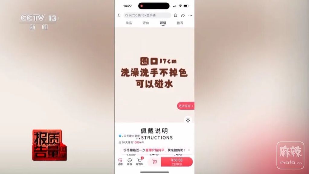 记者调查发现,在多个电商平台及带货直播间,售价几十元的饰品,在产品介绍中写道“洗澡洗手不掉色”,并反复提示消费者是镀18K金。
