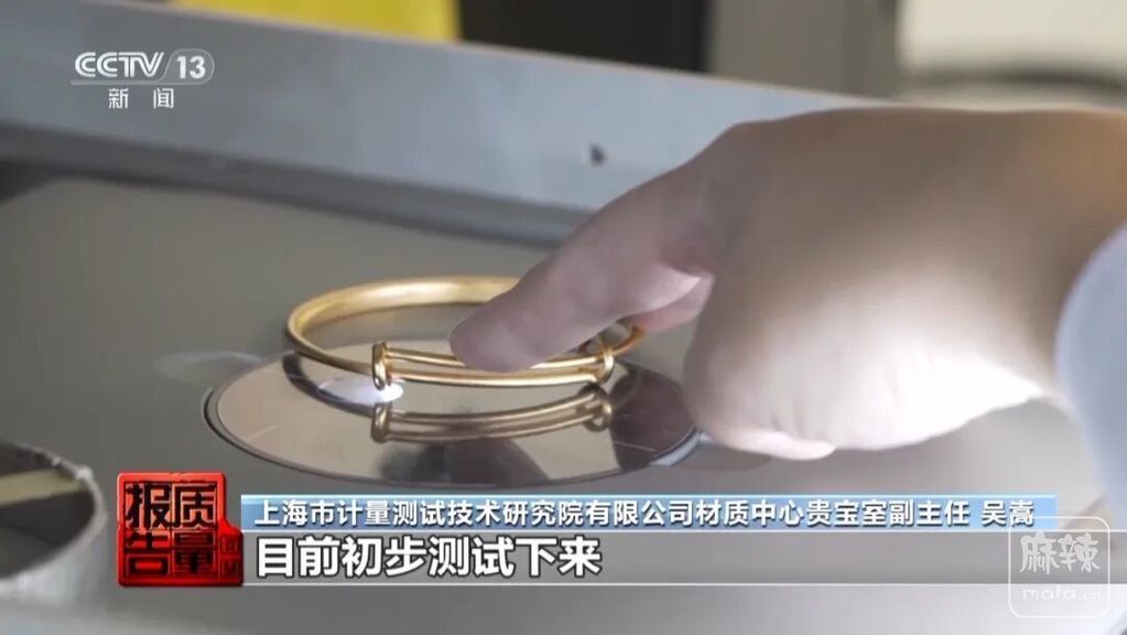 上海市计量测试技术研究院有限公司材质中心贵宝室副主任 吴嵩:目前初步测试下来,金黄色的这些首饰产品,它金的覆盖层的厚度普遍是比较低的,一般都是在零点零几微米的级别,如果达不到金覆盖层的厚度,那么就不能称为镀金产品。