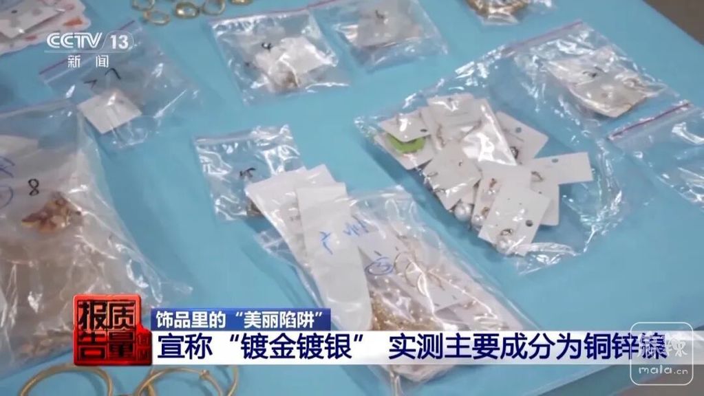部分商家还虚假标注贵金属印记,制造视觉假象,甚至拿出所谓的检测报告和鉴定证书进一步误导消费者。专家提醒,镀金镀银饰品经过长时间佩戴磨损后,可能暴露出内层合金材质,进而带来健康隐患。