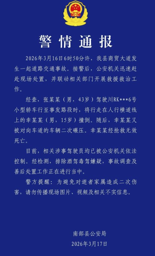 南部16岁高中学生遭车辆撞击身亡!