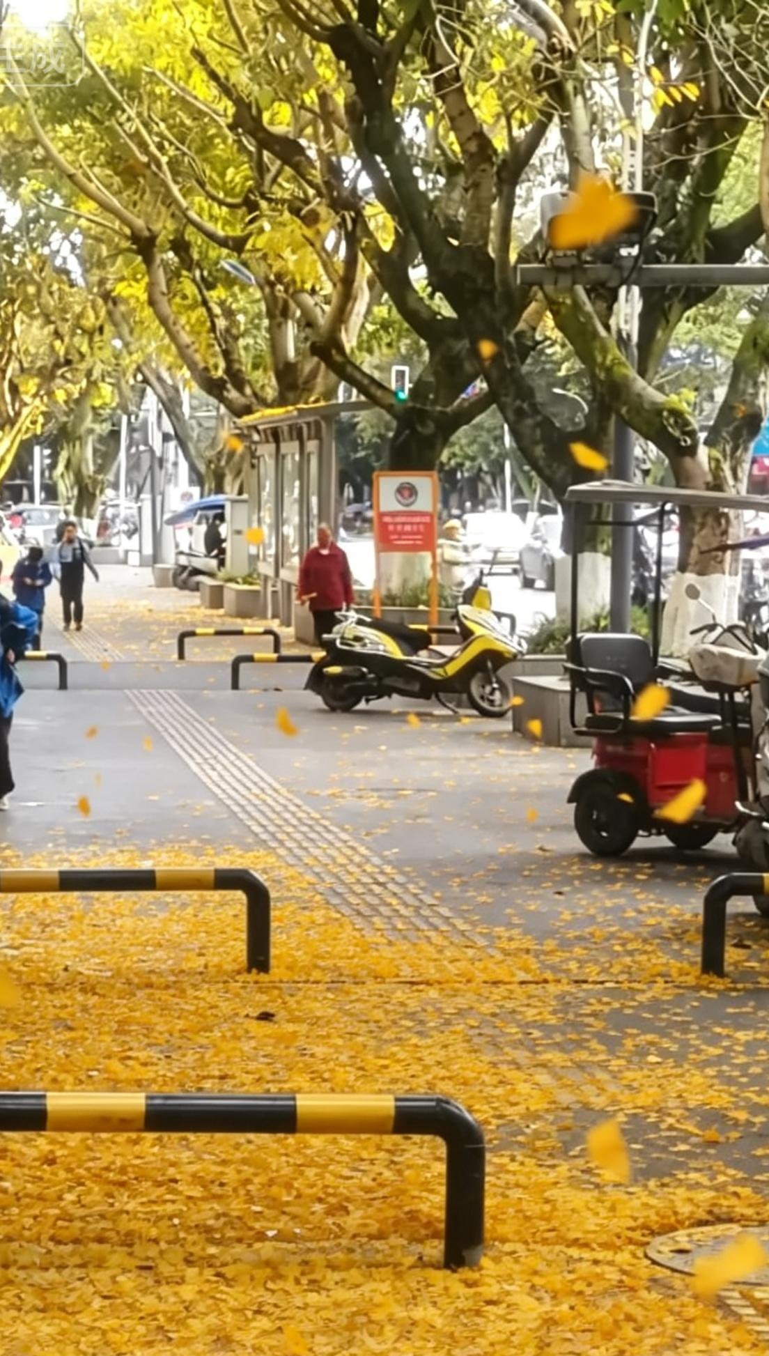 岳池县九龙大街及周边很有特色街区,道路两侧的黄桷树历经多年生长,已成为一道标志性的城市风景线。每至春日,随着气温回升,黄桷树进入自然换叶期,春风拂过,金黄的树叶如雪花般纷纷飘落,瞬间营造出“春日秋景”的唯美意境。落叶铺满地面,宛如一条金色地毯,将整条街道装点得如梦似幻,吸引不少市民驻足观赏、拍照留念。