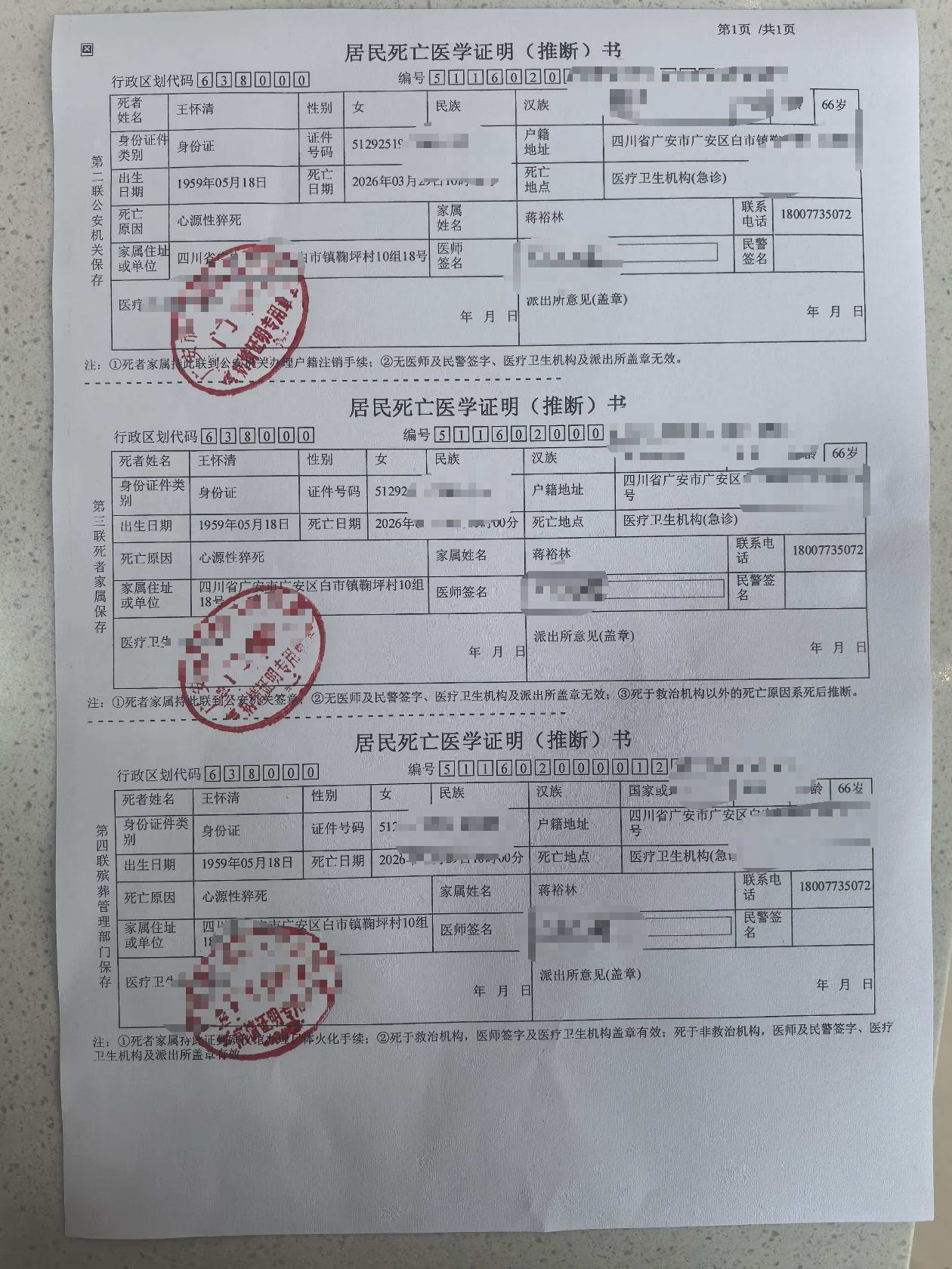 致广安区领导的一封信尊敬的广安区各位领导:您好!我叫蒋裕林,是逝者王怀清的儿子。现怀着极度悲痛与无助的心情,向各位领导实名求助,恳请领导为民做主、出面协调,尽快妥善处理我母亲在岗猝死的善后与赔偿问题。我的母亲王怀清,是成都湖川物业管理有限公司派遣至广安区人民医院的在岗护工,长期在医院从事护理工作。2026年3月29日,母亲因长期工作时间过长、劳动强度过大,在广安区人民医院工作岗位上突发疾病,不幸意外猝死。事发至今,已过去二十余天。事发后,我们家属悲痛万分,始终理性维权、克制忍让,多次主动让步,完全愿意配合政府相关部门的调解安排,也愿意遵照相关部门提出的处理意见协商解决。前期经多方沟通协调,双方本已基本达成处理共识,眼看事情即将妥善了结。但让人无比寒心的是:后续广安区人民医院与成都湖川物业管理有限公司再次出尔反尔、相互推诿、扯皮不断。医院以护工属于物业外包人员为由推脱责任,成都湖川物业又以医院日常管理、排班作息为由回避责任。两家单位反复拉扯、不断拖延,无视前期调解共识,推翻协商基础,一次次消耗家属耐心,浪费大量宝贵时间,导致善后事宜彻底停滞,问题迟迟无法推进解决。我母亲在工作时间、工作岗位不幸离世,长期超负荷劳作是重要诱因,理应依法依规划分责任,落实工亡待遇、丧葬费、抚恤金及合理赔偿。我们家属通情达理,只求公道、只求合理合法解决,并无过分诉求。然而涉事单位冷漠敷衍、互相甩锅,一次次伤透家属的心,让普通老百姓求助无门、维权无路。万般无奈之下,只能冒昧向各位区领导求助。恳请领导高度重视此次人命关天的大事,出面牵头督办,压实双方主体责任,制止推诿扯皮,督促广安区人民医院与成都湖川物业管理有限公司正视问题、履行责任。希望能够尽快重启协商,按照政策与法律妥善处理善后及赔偿事宜,给逝者一份尊重,给我们悲痛的家属一个公平合理的交代。本人保证以上所述全部属实,恳请领导体恤民情、主持公道。申请人:蒋裕林联系电话:__18007735072______日期:2026年4月18日