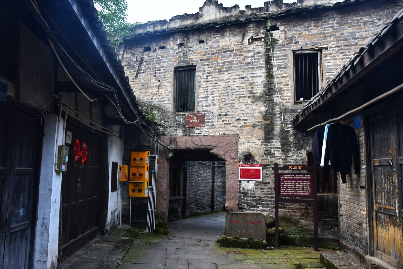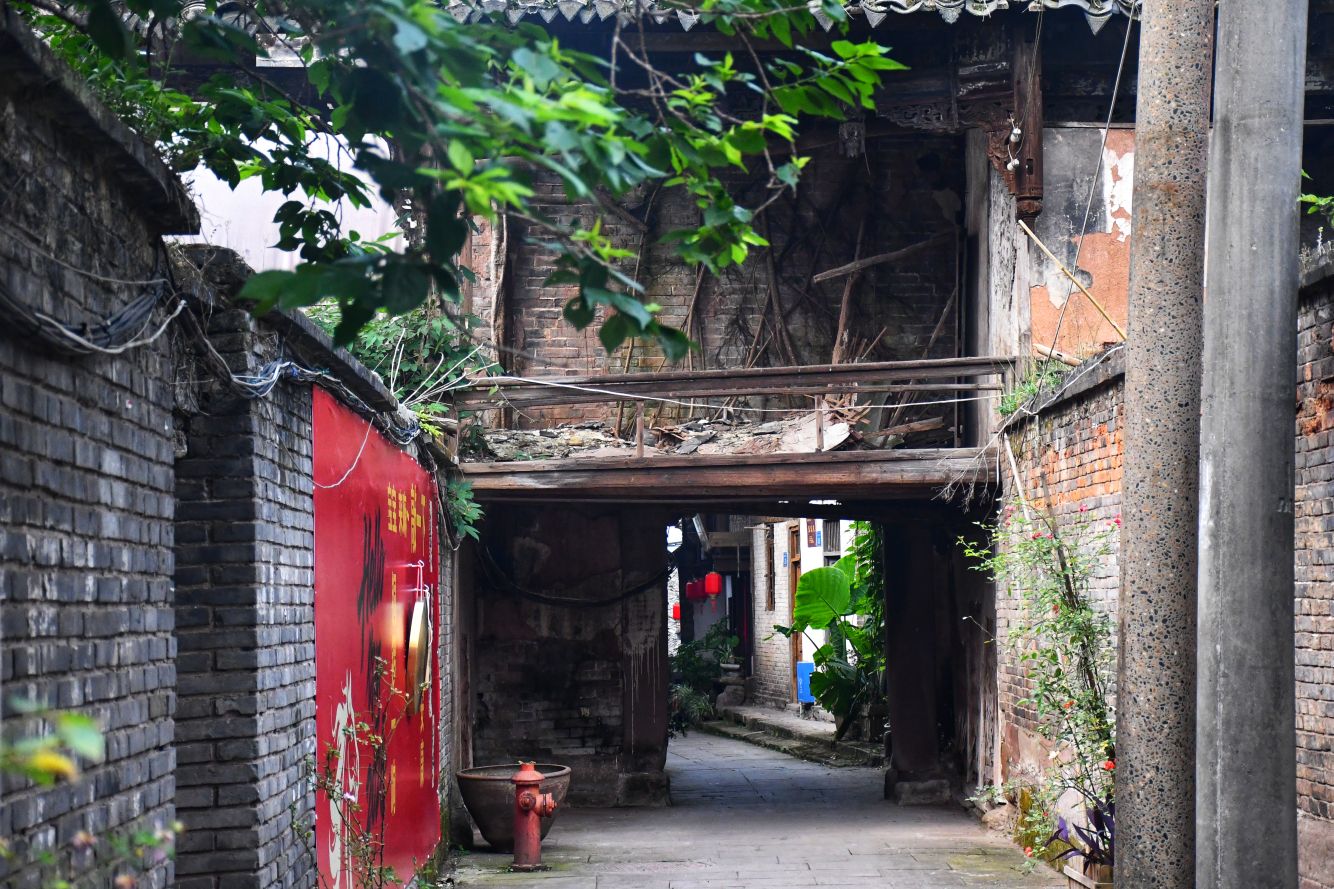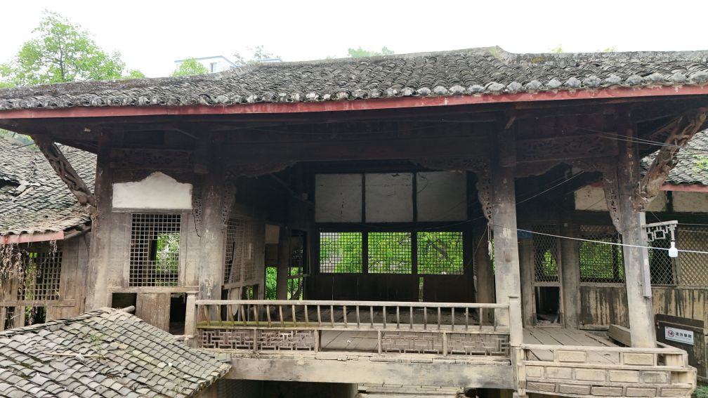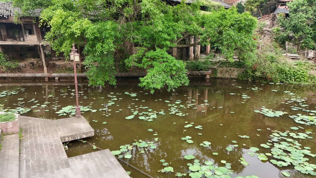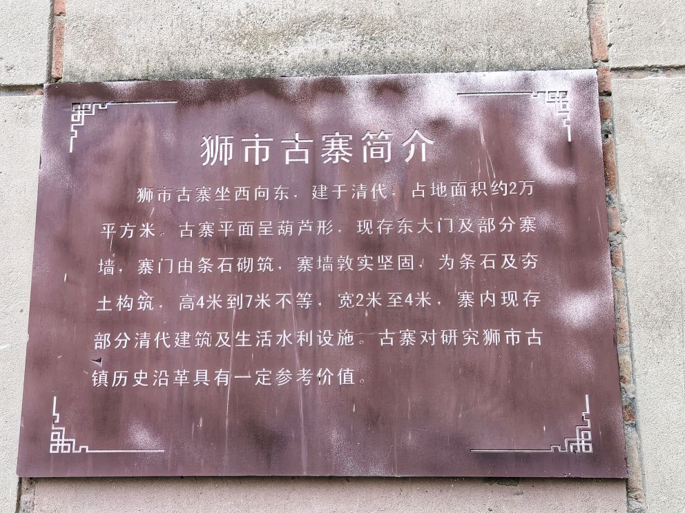 我伫立在狮市古寨的简介牌前,指尖轻轻抚过那块被风雨经年浸润的褐色金属铭牌。斑驳发白的刻字,静静记录着岁月沉淀:清代形制的葫芦古寨,条石夯土垒筑的绵长寨墙,数丈高的旧时防御工事,连同寨内完好留存的清代老屋与古旧水利遗存,尽数凝缩于此。一方铭牌,宛如一把岁月钥匙,缓缓推开沱江畔这座千年盐运古镇的厚重山门。 登高远眺,整座狮市古镇温柔依偎在沱江蜿蜒的岸畔。连片青瓦鳞次栉比,错落铺展,如一尾安然卧于水岸的古鱼。江上长桥横亘两岸,薄雾淡淡氤氲,江水泛着温润银光,晕染得两岸林木屋舍朦胧柔和。临江吊脚楼次第排开,百年木构廊柱泛着深沉古褐,雕花栏杆饱经风霜,寻常人家檐下晾晒的细碎烟火,为沉寂古建平添几分人间暖意。 踏着温润古朴的青石板缓步深入街巷,寨门石匾上“驿关池”三字古朴苍劲,篆文刻痕覆着浅浅青苔,磨损边角皆是时光印记。这里自古便是川南要道,更是自贡盐运北上的第一道关口。往昔沱江水面舟楫千帆,盐船顺江而下,商贾云集,码头之上盐垛堆积、车马穿梭,狭长石板路上,深深浅浅的辙痕,皆是盐帮脚夫与往来商旅留下的沧桑印记。 沿街慢行,一处文物标识静静伫立,指引着天后宫的方向。这座旧时福建盐商集资修建的会馆,又名妈祖庙,曾是异地商贾落脚相聚之地。昔日香火缭绕、人声鼎沸,如今褪去繁华盛景,却依旧留存着清代木构建筑的恢弘风骨。石砌拱门古朴厚重,窄巷高墙青苔遍布,墙间镌刻的“天后宫”三字沉静肃穆,默默守护着古镇代代流转的旧时光。 古镇老街幽深狭长,最窄处不足两米,素有一线天之谓。脚下青石板被百年行人脚步打磨得光滑温润,凹陷的沟槽里,依稀还能想见旧时挑夫负重前行的身影。两侧老式木屋斑驳老旧,褪色木门纹理沧桑,门前石墩雕花依稀残存。墙根绿植蔓延伸展,缠绕老屋院墙,檐角悬垂的红灯笼随风轻晃,为幽深静谧的老街,添上一抹温柔暖色。 步入天后宫院内,抬眼皆是岁月雕琢的古建细节。木质梁架雕花繁复精美,镂空垂花柱纹样精巧,梁枋间镌刻的人物典故虽蒙尘结网,神韵依旧生动。老屋梁柱与砖墙缝隙之间,草木顽强生根生长,枝干盘错缠绕古旧屋体,人与建筑、岁月与自然相融共生,酿成古镇独有的沧桑景致。 街巷转角,老式供销社建筑格外惹眼。青砖墙垣刻满时代痕迹,墙面旧字虽模糊褪色,依旧难掩当年兴盛光景。拱形门洞幽深昏暗,静默伫立,仿佛还在等候昔日赶集乡民的归来。解放街、油房坡街的老旧路牌交错相映,纵横电线穿梭街巷,将旧日市井记忆与当下寻常生活温柔衔接,岁月流转,烟火未断。 院落僻静角落,两盘老旧石磨静静闲置一隅。磨盘纹路经年磨损,棱角早已圆润,却沉淀着一辈辈当地人的日常烟火。从前岁岁年年,乡民以此磨面碾粮,石磨转动间,磨出人间温饱,磨出古镇烟火寻常。而今荒草漫生石缝,老旧石磨归于沉寂,却依旧以最质朴的模样,留存着乡土旧日温情。 行至街巷尽头,一方清浅荷塘安然静卧。荷叶田田,蜻蜓点水,岸边石阶蜿蜒临水,几盏老旧路灯静立路旁。暮色将至时,暖黄光影洒落塘面,水波微动,树影婆娑。塘边空置老屋门窗残破,古旧屋舍隐于草木深处,静静守着一方荷塘碧水,与古镇朝夕相伴,静待流年。 告别荷塘,循着错落木影继续穿行,转过爬满青藤的矮墙,一座古朴沧桑的老建筑蓦然入目,便是古镇久负盛名的川主庙古戏台。 凝神凝望这座双层木构古建,心底不由生出几分怅然与感慨。戏台木楼久经风雨侵蚀,上层隔断朽坏残破,空洞窗洞朝向沱江流水,似是无声凝望一江岁月。粗壮木柱布满干裂纹路,横梁撑拱雕花模糊浅淡,却依旧能辨出旧时精工雕琢的卷草纹样。老旧青瓦层层叠叠,部分檐角残损坍塌,天光错落洒落台面,斑驳光影里,写满繁华落尽的寂寥。 缓步行至戏台正前,整座建筑的旧时形制完整铺展。条石垒砌的台基厚重稳固,石栏雕花风化斑驳,历经百年风雨依旧坚实。戏台木栏褪色老旧,几缕现代电线横穿梁间,新旧交织,反倒更衬出古建的悠远。抬眼细观梁柱木雕,残存纹路栩栩如生,闭目遐想之间,耳畔似有锣鼓铿锵、戏腔婉转,旧日盛景恍若重现。 独立空旷戏台之下,思绪漫溯往昔岁月。旧时每逢庙会佳节、祭祀庆典,此地便是全镇最热闹的去处。四方乡民、往来盐商、码头力夫齐聚于此,台下人头攒动,人声鼎沸。台上川剧开演,水袖翻飞,唱腔悠扬婉转,锣鼓声声震彻街巷。沱江流水滔滔为伴,戏台戏文婉转相融,叫好声、欢笑声顺着江风漫向远方,成就古镇最鲜活热闹的市井记忆。 世事变迁,繁华终会落幕。如今古戏台人去楼空,蛛网密布梁柱,荒草漫上台基石缝,清风穿堂而过,在空荡楼宇间低低回响,宛如一曲悠长悠长的旧戏余韵。纵然盛景不再,这座老戏台依旧静静伫立,木梁刻痕、老旧木板、残旧飞檐,皆是历史的见证,封存着狮市古镇的民俗文脉,藏着一方水土的烟火过往。 一路行至沱江岸边,一方石碑静静矗立,上书盐运北上第一关,狮市古渡。史料所载,自清康熙年间此地成形集市,依托沱江水运之便,成为川盐外运、商贸往来的关键节点。千帆竞渡,百船云集,古渡码头盛极一时,助推川南盐业繁华岁月。时过境迁,旧日渡口早已褪去喧嚣,江面游船静静停泊,碧水倒映绿树云天,江水缓缓东流,无声见证世事更迭。 暮色渐浓,晚风轻柔,不少游人沿江边步道缓缓返程。道旁刺桐花热烈盛放,火红繁
