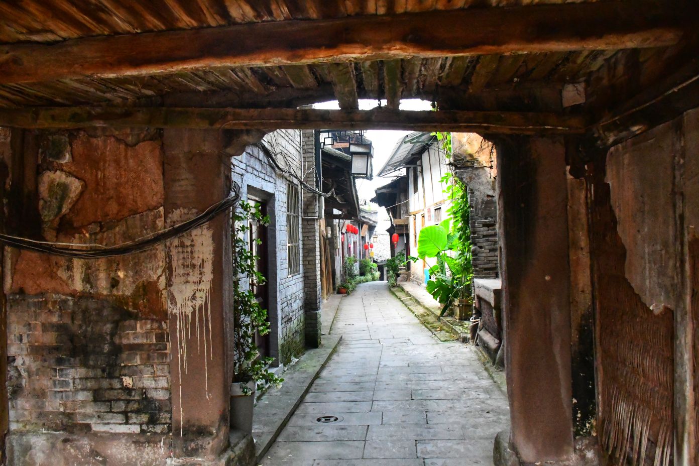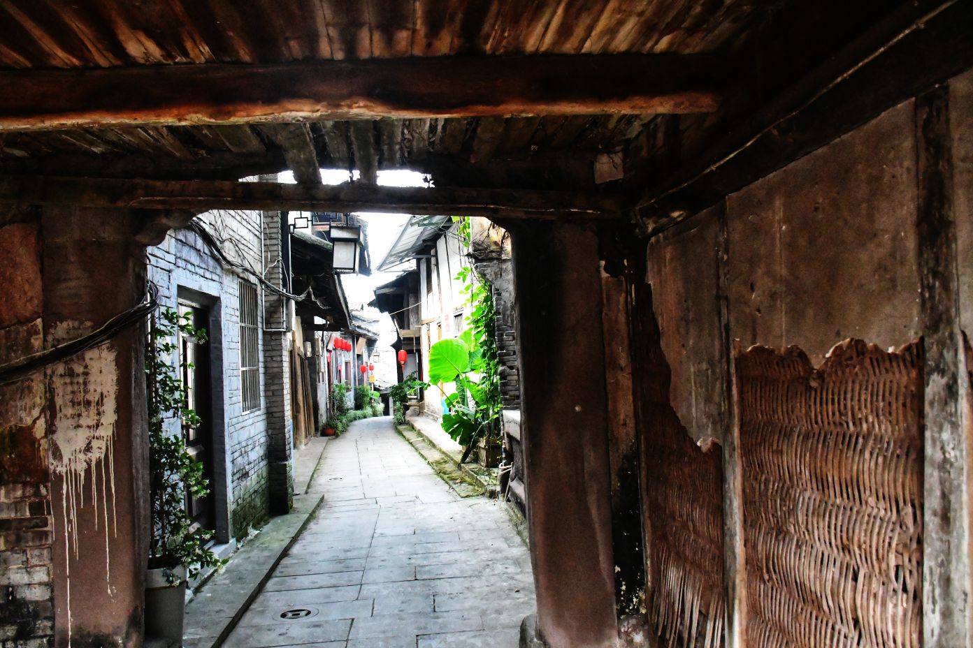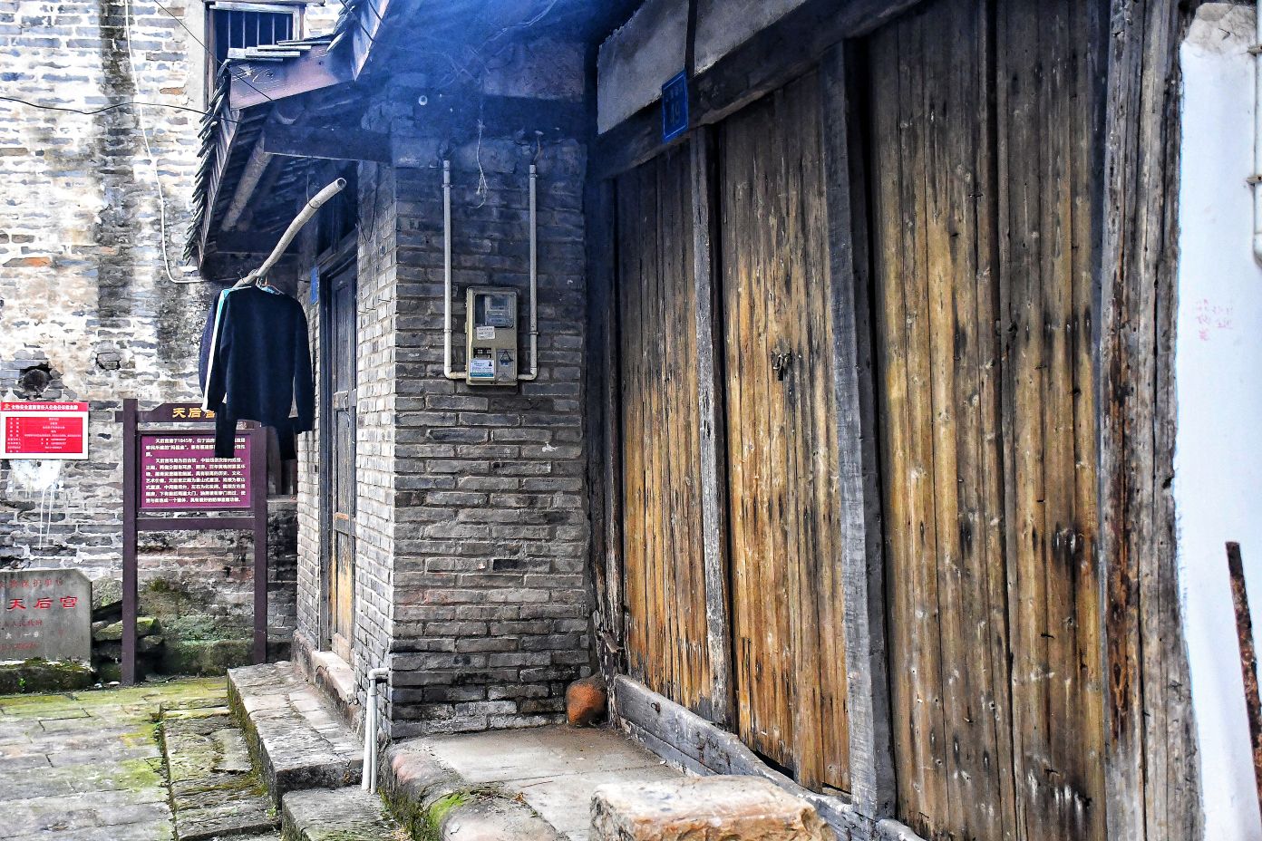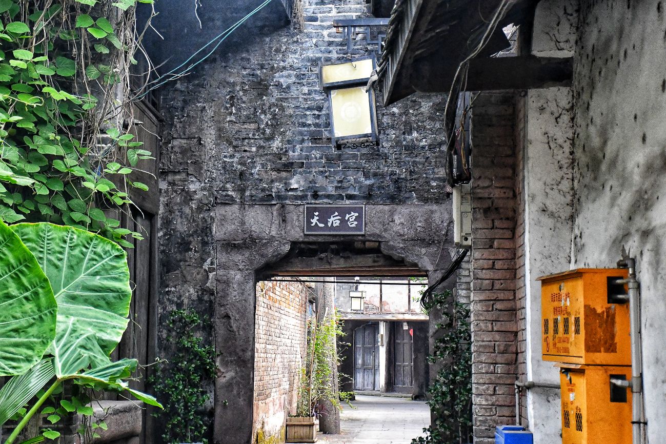 我伫立在狮市古寨的简介牌前,指尖轻轻抚过那块被风雨经年浸润的褐色金属铭牌。斑驳发白的刻字,静静记录着岁月沉淀:清代形制的葫芦古寨,条石夯土垒筑的绵长寨墙,数丈高的旧时防御工事,连同寨内完好留存的清代老屋与古旧水利遗存,尽数凝缩于此。一方铭牌,宛如一把岁月钥匙,缓缓推开沱江畔这座千年盐运古镇的厚重山门。 登高远眺,整座狮市古镇温柔依偎在沱江蜿蜒的岸畔。连片青瓦鳞次栉比,错落铺展,如一尾安然卧于水岸的古鱼。江上长桥横亘两岸,薄雾淡淡氤氲,江水泛着温润银光,晕染得两岸林木屋舍朦胧柔和。临江吊脚楼次第排开,百年木构廊柱泛着深沉古褐,雕花栏杆饱经风霜,寻常人家檐下晾晒的细碎烟火,为沉寂古建平添几分人间暖意。 踏着温润古朴的青石板缓步深入街巷,寨门石匾上“驿关池”三字古朴苍劲,篆文刻痕覆着浅浅青苔,磨损边角皆是时光印记。这里自古便是川南要道,更是自贡盐运北上的第一道关口。往昔沱江水面舟楫千帆,盐船顺江而下,商贾云集,码头之上盐垛堆积、车马穿梭,狭长石板路上,深深浅浅的辙痕,皆是盐帮脚夫与往来商旅留下的沧桑印记。 沿街慢行,一处文物标识静静伫立,指引着天后宫的方向。这座旧时福建盐商集资修建的会馆,又名妈祖庙,曾是异地商贾落脚相聚之地。昔日香火缭绕、人声鼎沸,如今褪去繁华盛景,却依旧留存着清代木构建筑的恢弘风骨。石砌拱门古朴厚重,窄巷高墙青苔遍布,墙间镌刻的“天后宫”三字沉静肃穆,默默守护着古镇代代流转的旧时光。 古镇老街幽深狭长,最窄处不足两米,素有一线天之谓。脚下青石板被百年行人脚步打磨得光滑温润,凹陷的沟槽里,依稀还能想见旧时挑夫负重前行的身影。两侧老式木屋斑驳老旧,褪色木门纹理沧桑,门前石墩雕花依稀残存。墙根绿植蔓延伸展,缠绕老屋院墙,檐角悬垂的红灯笼随风轻晃,为幽深静谧的老街,添上一抹温柔暖色。 步入天后宫院内,抬眼皆是岁月雕琢的古建细节。木质梁架雕花繁复精美,镂空垂花柱纹样精巧,梁枋间镌刻的人物典故虽蒙尘结网,神韵依旧生动。老屋梁柱与砖墙缝隙之间,草木顽强生根生长,枝干盘错缠绕古旧屋体,人与建筑、岁月与自然相融共生,酿成古镇独有的沧桑景致。 街巷转角,老式供销社建筑格外惹眼。青砖墙垣刻满时代痕迹,墙面旧字虽模糊褪色,依旧难掩当年兴盛光景。拱形门洞幽深昏暗,静默伫立,仿佛还在等候昔日赶集乡民的归来。解放街、油房坡街的老旧路牌交错相映,纵横电线穿梭街巷,将旧日市井记忆与当下寻常生活温柔衔接,岁月流转,烟火未断。 院落僻静角落,两盘老旧石磨静静闲置一隅。磨盘纹路经年磨损,棱角早已圆润,却沉淀着一辈辈当地人的日常烟火。从前岁岁年年,乡民以此磨面碾粮,石磨转动间,磨出人间温饱,磨出古镇烟火寻常。而今荒草漫生石缝,老旧石磨归于沉寂,却依旧以最质朴的模样,留存着乡土旧日温情。 行至街巷尽头,一方清浅荷塘安然静卧。荷叶田田,蜻蜓点水,岸边石阶蜿蜒临水,几盏老旧路灯静立路旁。暮色将至时,暖黄光影洒落塘面,水波微动,树影婆娑。塘边空置老屋门窗残破,古旧屋舍隐于草木深处,静静守着一方荷塘碧水,与古镇朝夕相伴,静待流年。 告别荷塘,循着错落木影继续穿行,转过爬满青藤的矮墙,一座古朴沧桑的老建筑蓦然入目,便是古镇久负盛名的川主庙古戏台。 凝神凝望这座双层木构古建,心底不由生出几分怅然与感慨。戏台木楼久经风雨侵蚀,上层隔断朽坏残破,空洞窗洞朝向沱江流水,似是无声凝望一江岁月。粗壮木柱布满干裂纹路,横梁撑拱雕花模糊浅淡,却依旧能辨出旧时精工雕琢的卷草纹样。老旧青瓦层层叠叠,部分檐角残损坍塌,天光错落洒落台面,斑驳光影里,写满繁华落尽的寂寥。 缓步行至戏台正前,整座建筑的旧时形制完整铺展。条石垒砌的台基厚重稳固,石栏雕花风化斑驳,历经百年风雨依旧坚实。戏台木栏褪色老旧,几缕现代电线横穿梁间,新旧交织,反倒更衬出古建的悠远。抬眼细观梁柱木雕,残存纹路栩栩如生,闭目遐想之间,耳畔似有锣鼓铿锵、戏腔婉转,旧日盛景恍若重现。 独立空旷戏台之下,思绪漫溯往昔岁月。旧时每逢庙会佳节、祭祀庆典,此地便是全镇最热闹的去处。四方乡民、往来盐商、码头力夫齐聚于此,台下人头攒动,人声鼎沸。台上川剧开演,水袖翻飞,唱腔悠扬婉转,锣鼓声声震彻街巷。沱江流水滔滔为伴,戏台戏文婉转相融,叫好声、欢笑声顺着江风漫向远方,成就古镇最鲜活热闹的市井记忆。 世事变迁,繁华终会落幕。如今古戏台人去楼空,蛛网密布梁柱,荒草漫上台基石缝,清风穿堂而过,在空荡楼宇间低低回响,宛如一曲悠长悠长的旧戏余韵。纵然盛景不再,这座老戏台依旧静静伫立,木梁刻痕、老旧木板、残旧飞檐,皆是历史的见证,封存着狮市古镇的民俗文脉,藏着一方水土的烟火过往。 一路行至沱江岸边,一方石碑静静矗立,上书盐运北上第一关,狮市古渡。史料所载,自清康熙年间此地成形集市,依托沱江水运之便,成为川盐外运、商贸往来的关键节点。千帆竞渡,百船云集,古渡码头盛极一时,助推川南盐业繁华岁月。时过境迁,旧日渡口早已褪去喧嚣,江面游船静静停泊,碧水倒映绿树云天,江水缓缓东流,无声见证世事更迭。 暮色渐浓,晚风轻柔,不少游人沿江边步道缓缓返程。道旁刺桐花热烈盛放,火红繁