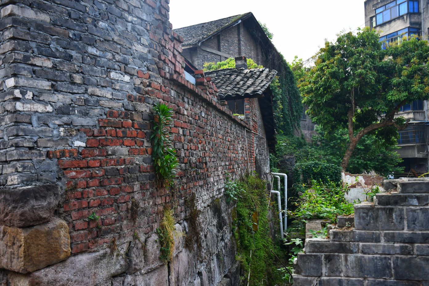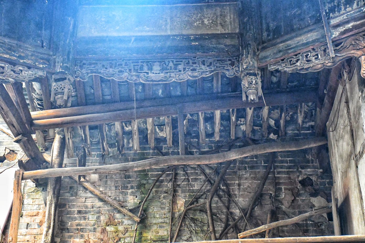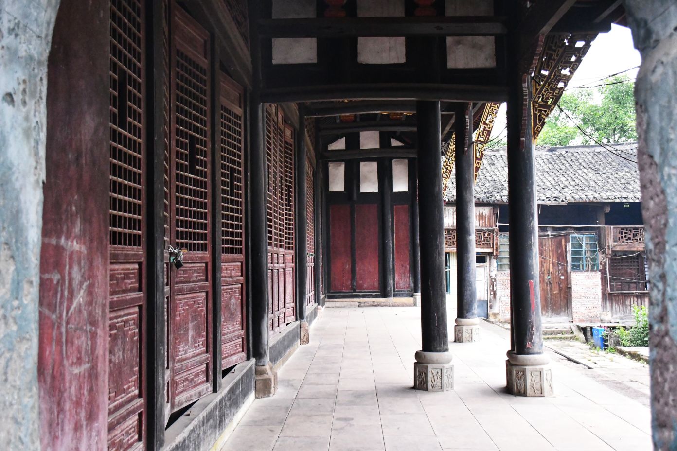 我伫立在狮市古寨的简介牌前,指尖轻轻抚过那块被风雨经年浸润的褐色金属铭牌。斑驳发白的刻字,静静记录着岁月沉淀:清代形制的葫芦古寨,条石夯土垒筑的绵长寨墙,数丈高的旧时防御工事,连同寨内完好留存的清代老屋与古旧水利遗存,尽数凝缩于此。一方铭牌,宛如一把岁月钥匙,缓缓推开沱江畔这座千年盐运古镇的厚重山门。 登高远眺,整座狮市古镇温柔依偎在沱江蜿蜒的岸畔。连片青瓦鳞次栉比,错落铺展,如一尾安然卧于水岸的古鱼。江上长桥横亘两岸,薄雾淡淡氤氲,江水泛着温润银光,晕染得两岸林木屋舍朦胧柔和。临江吊脚楼次第排开,百年木构廊柱泛着深沉古褐,雕花栏杆饱经风霜,寻常人家檐下晾晒的细碎烟火,为沉寂古建平添几分人间暖意。 踏着温润古朴的青石板缓步深入街巷,寨门石匾上“驿关池”三字古朴苍劲,篆文刻痕覆着浅浅青苔,磨损边角皆是时光印记。这里自古便是川南要道,更是自贡盐运北上的第一道关口。往昔沱江水面舟楫千帆,盐船顺江而下,商贾云集,码头之上盐垛堆积、车马穿梭,狭长石板路上,深深浅浅的辙痕,皆是盐帮脚夫与往来商旅留下的沧桑印记。 沿街慢行,一处文物标识静静伫立,指引着天后宫的方向。这座旧时福建盐商集资修建的会馆,又名妈祖庙,曾是异地商贾落脚相聚之地。昔日香火缭绕、人声鼎沸,如今褪去繁华盛景,却依旧留存着清代木构建筑的恢弘风骨。石砌拱门古朴厚重,窄巷高墙青苔遍布,墙间镌刻的“天后宫”三字沉静肃穆,默默守护着古镇代代流转的旧时光。 古镇老街幽深狭长,最窄处不足两米,素有一线天之谓。脚下青石板被百年行人脚步打磨得光滑温润,凹陷的沟槽里,依稀还能想见旧时挑夫负重前行的身影。两侧老式木屋斑驳老旧,褪色木门纹理沧桑,门前石墩雕花依稀残存。墙根绿植蔓延伸展,缠绕老屋院墙,檐角悬垂的红灯笼随风轻晃,为幽深静谧的老街,添上一抹温柔暖色。 步入天后宫院内,抬眼皆是岁月雕琢的古建细节。木质梁架雕花繁复精美,镂空垂花柱纹样精巧,梁枋间镌刻的人物典故虽蒙尘结网,神韵依旧生动。老屋梁柱与砖墙缝隙之间,草木顽强生根生长,枝干盘错缠绕古旧屋体,人与建筑、岁月与自然相融共生,酿成古镇独有的沧桑景致。 街巷转角,老式供销社建筑格外惹眼。青砖墙垣刻满时代痕迹,墙面旧字虽模糊褪色,依旧难掩当年兴盛光景。拱形门洞幽深昏暗,静默伫立,仿佛还在等候昔日赶集乡民的归来。解放街、油房坡街的老旧路牌交错相映,纵横电线穿梭街巷,将旧日市井记忆与当下寻常生活温柔衔接,岁月流转,烟火未断。 院落僻静角落,两盘老旧石磨静静闲置一隅。磨盘纹路经年磨损,棱角早已圆润,却沉淀着一辈辈当地人的日常烟火。从前岁岁年年,乡民以此磨面碾粮,石磨转动间,磨出人间温饱,磨出古镇烟火寻常。而今荒草漫生石缝,老旧石磨归于沉寂,却依旧以最质朴的模样,留存着乡土旧日温情。 行至街巷尽头,一方清浅荷塘安然静卧。荷叶田田,蜻蜓点水,岸边石阶蜿蜒临水,几盏老旧路灯静立路旁。暮色将至时,暖黄光影洒落塘面,水波微动,树影婆娑。塘边空置老屋门窗残破,古旧屋舍隐于草木深处,静静守着一方荷塘碧水,与古镇朝夕相伴,静待流年。 告别荷塘,循着错落木影继续穿行,转过爬满青藤的矮墙,一座古朴沧桑的老建筑蓦然入目,便是古镇久负盛名的川主庙古戏台。 凝神凝望这座双层木构古建,心底不由生出几分怅然与感慨。戏台木楼久经风雨侵蚀,上层隔断朽坏残破,空洞窗洞朝向沱江流水,似是无声凝望一江岁月。粗壮木柱布满干裂纹路,横梁撑拱雕花模糊浅淡,却依旧能辨出旧时精工雕琢的卷草纹样。老旧青瓦层层叠叠,部分檐角残损坍塌,天光错落洒落台面,斑驳光影里,写满繁华落尽的寂寥。 缓步行至戏台正前,整座建筑的旧时形制完整铺展。条石垒砌的台基厚重稳固,石栏雕花风化斑驳,历经百年风雨依旧坚实。戏台木栏褪色老旧,几缕现代电线横穿梁间,新旧交织,反倒更衬出古建的悠远。抬眼细观梁柱木雕,残存纹路栩栩如生,闭目遐想之间,耳畔似有锣鼓铿锵、戏腔婉转,旧日盛景恍若重现。 独立空旷戏台之下,思绪漫溯往昔岁月。旧时每逢庙会佳节、祭祀庆典,此地便是全镇最热闹的去处。四方乡民、往来盐商、码头力夫齐聚于此,台下人头攒动,人声鼎沸。台上川剧开演,水袖翻飞,唱腔悠扬婉转,锣鼓声声震彻街巷。沱江流水滔滔为伴,戏台戏文婉转相融,叫好声、欢笑声顺着江风漫向远方,成就古镇最鲜活热闹的市井记忆。 世事变迁,繁华终会落幕。如今古戏台人去楼空,蛛网密布梁柱,荒草漫上台基石缝,清风穿堂而过,在空荡楼宇间低低回响,宛如一曲悠长悠长的旧戏余韵。纵然盛景不再,这座老戏台依旧静静伫立,木梁刻痕、老旧木板、残旧飞檐,皆是历史的见证,封存着狮市古镇的民俗文脉,藏着一方水土的烟火过往。 一路行至沱江岸边,一方石碑静静矗立,上书盐运北上第一关,狮市古渡。史料所载,自清康熙年间此地成形集市,依托沱江水运之便,成为川盐外运、商贸往来的关键节点。千帆竞渡,百船云集,古渡码头盛极一时,助推川南盐业繁华岁月。时过境迁,旧日渡口早已褪去喧嚣,江面游船静静停泊,碧水倒映绿树云天,江水缓缓东流,无声见证世事更迭。 暮色渐浓,晚风轻柔,不少游人沿江边步道缓缓返程。道旁刺桐花热烈盛放,火红繁
